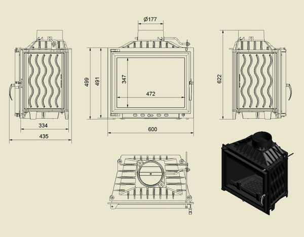 Focar de semineu fabricat integral din fonta, cu o putere de 10 KW, prevazut cu clapeta de tiraj si avand o greutate de 94 kg. A100 este focarul de fonta cu cel mai mic pret din catalogul nostru.